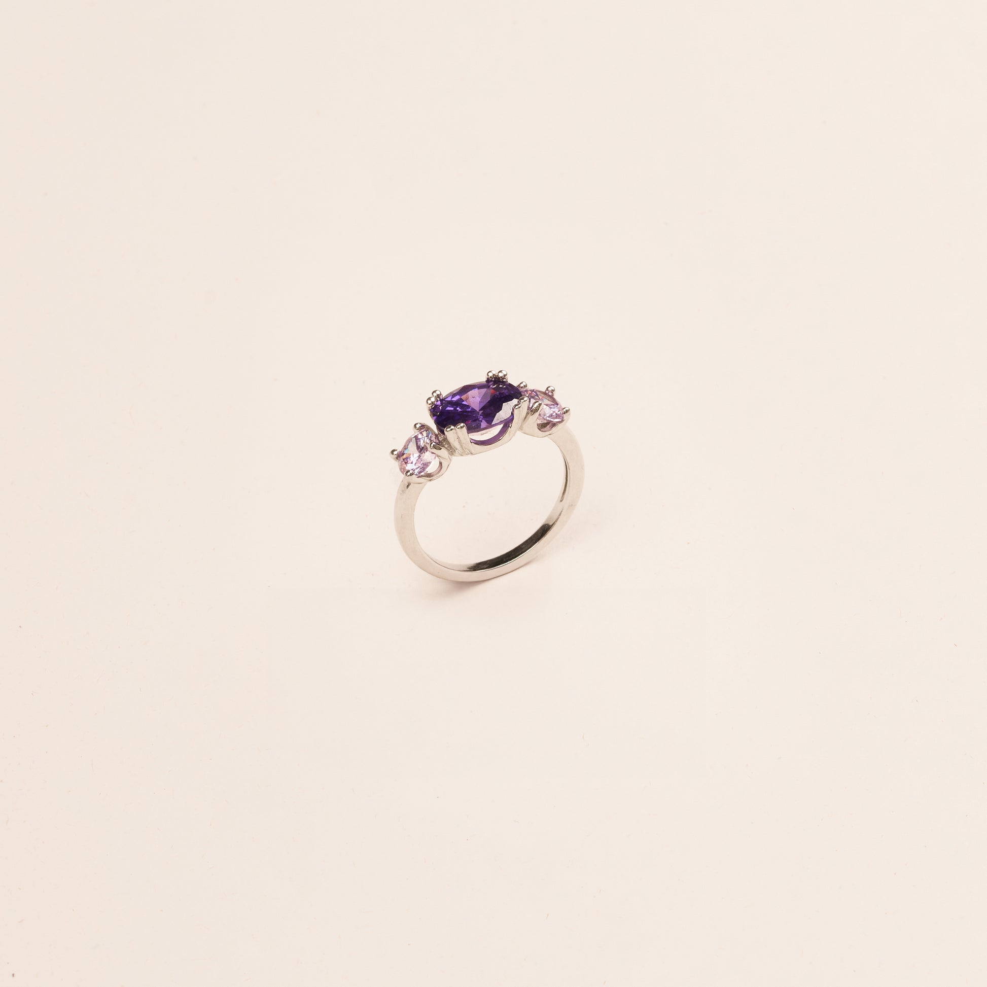 Deep purple stone acceptes with clear side crystals.Bold,modern,and refined.