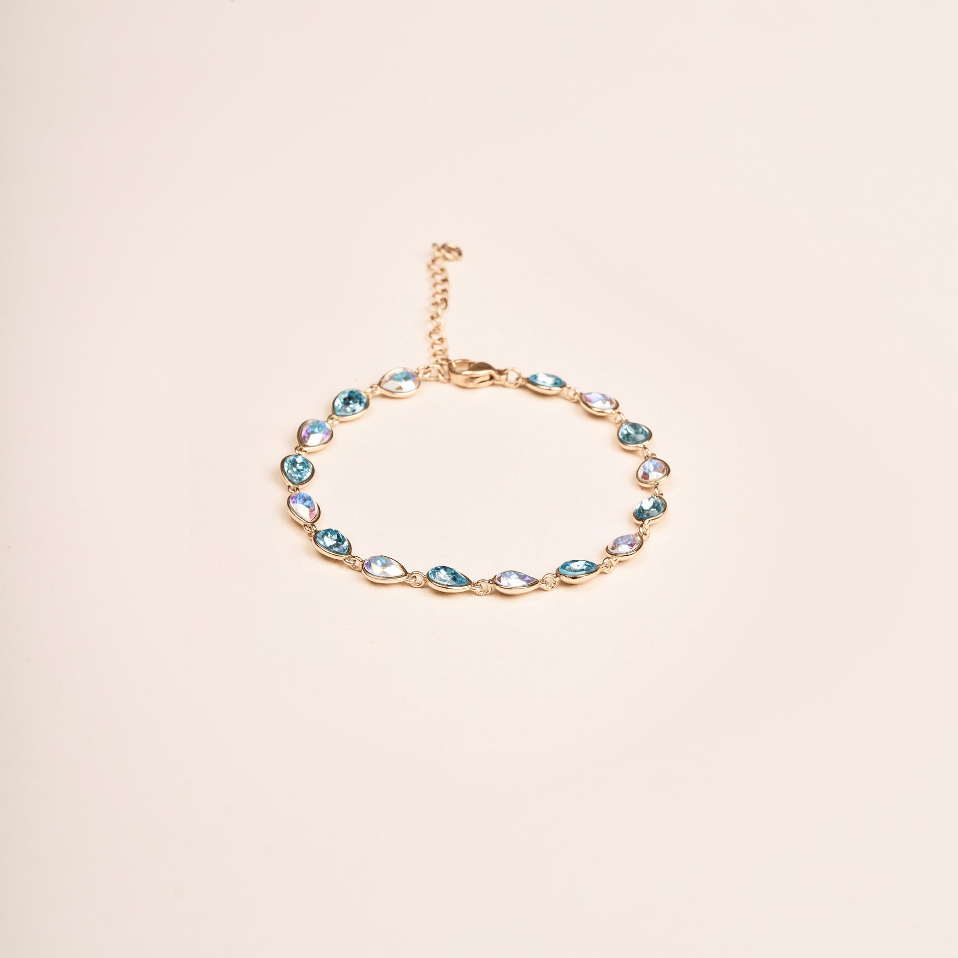 A delicate gold bracelet featuring light blue teardrop stones that catch the light beautifully. Minimalist, refined, and perfect for everyday elegance.
