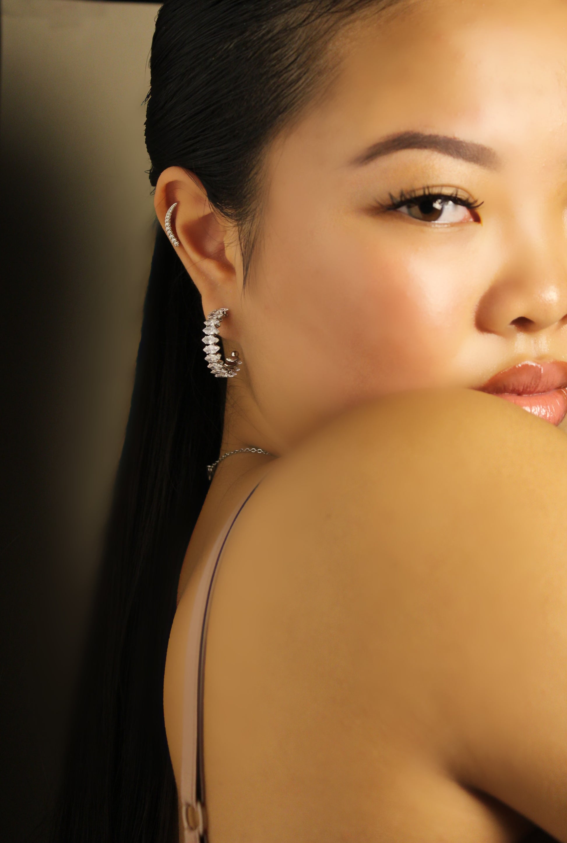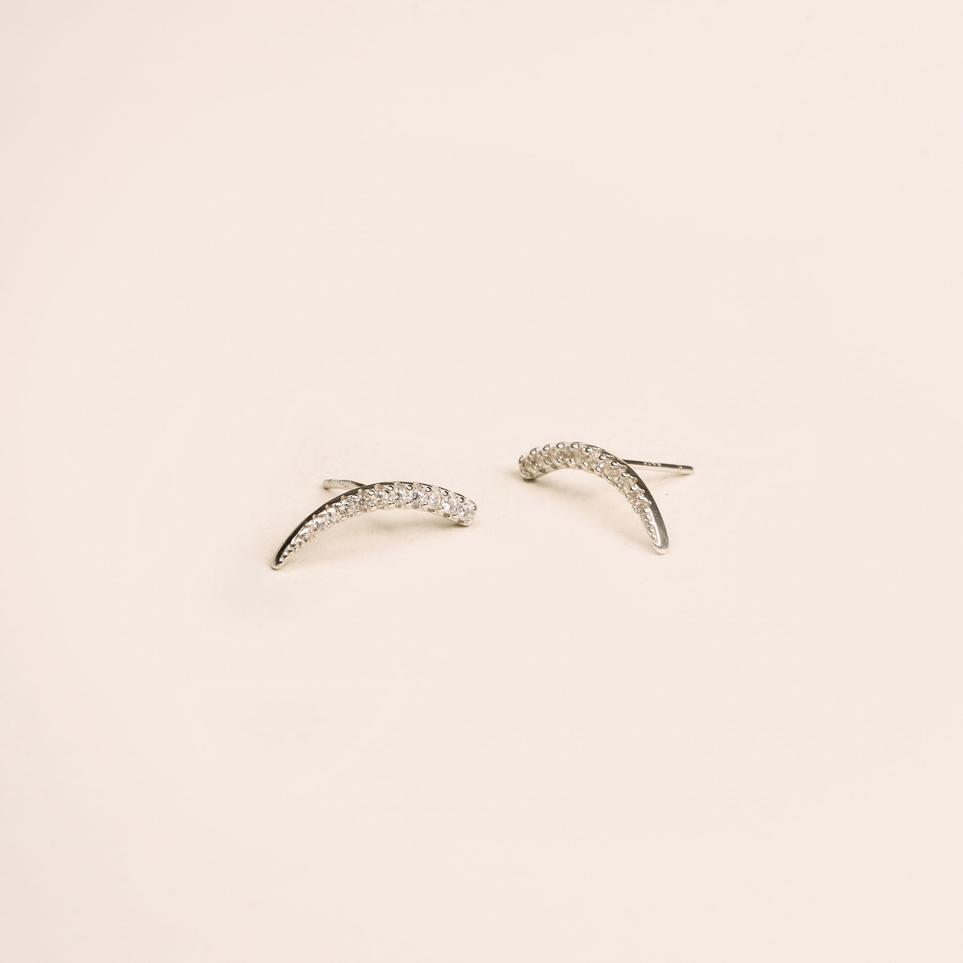 The Luna Climbers are a sleek and modern take on classic studs. Designed to follow the natural curve of your ear, these climbers feature a row of pavé-set cubic zirconia for a refined sparkle. Crafted in sterling silver, they’re perfect for layering or wearing solo for a minimalist yet striking look.