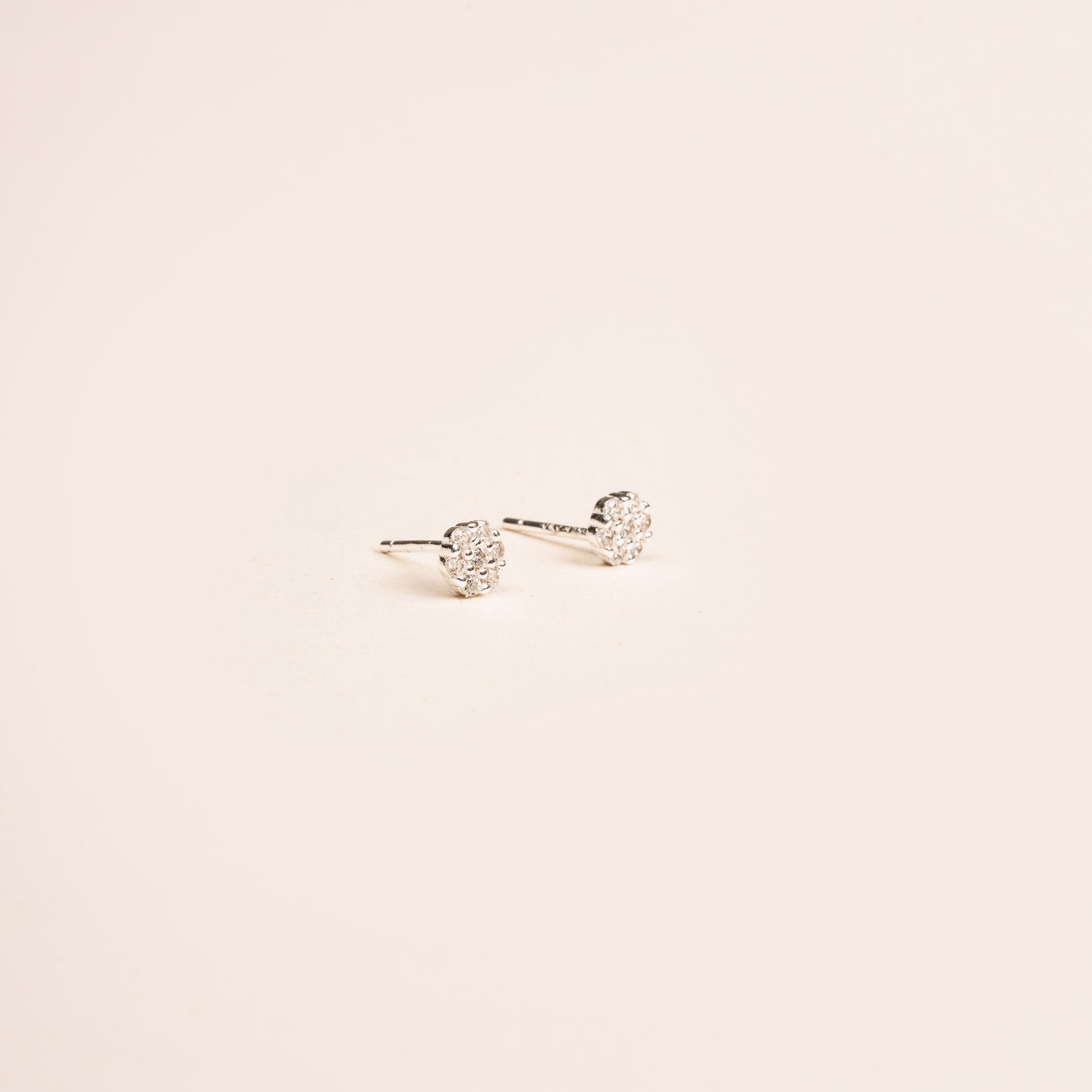 The Silver Bloom Studs bring a touch of subtle elegance with their floral-inspired design. Crafted in sterling silver and adorned with pavé cubic zirconia, these dainty studs are perfect for everyday wear or as a sparkling accent for a layered ear look.