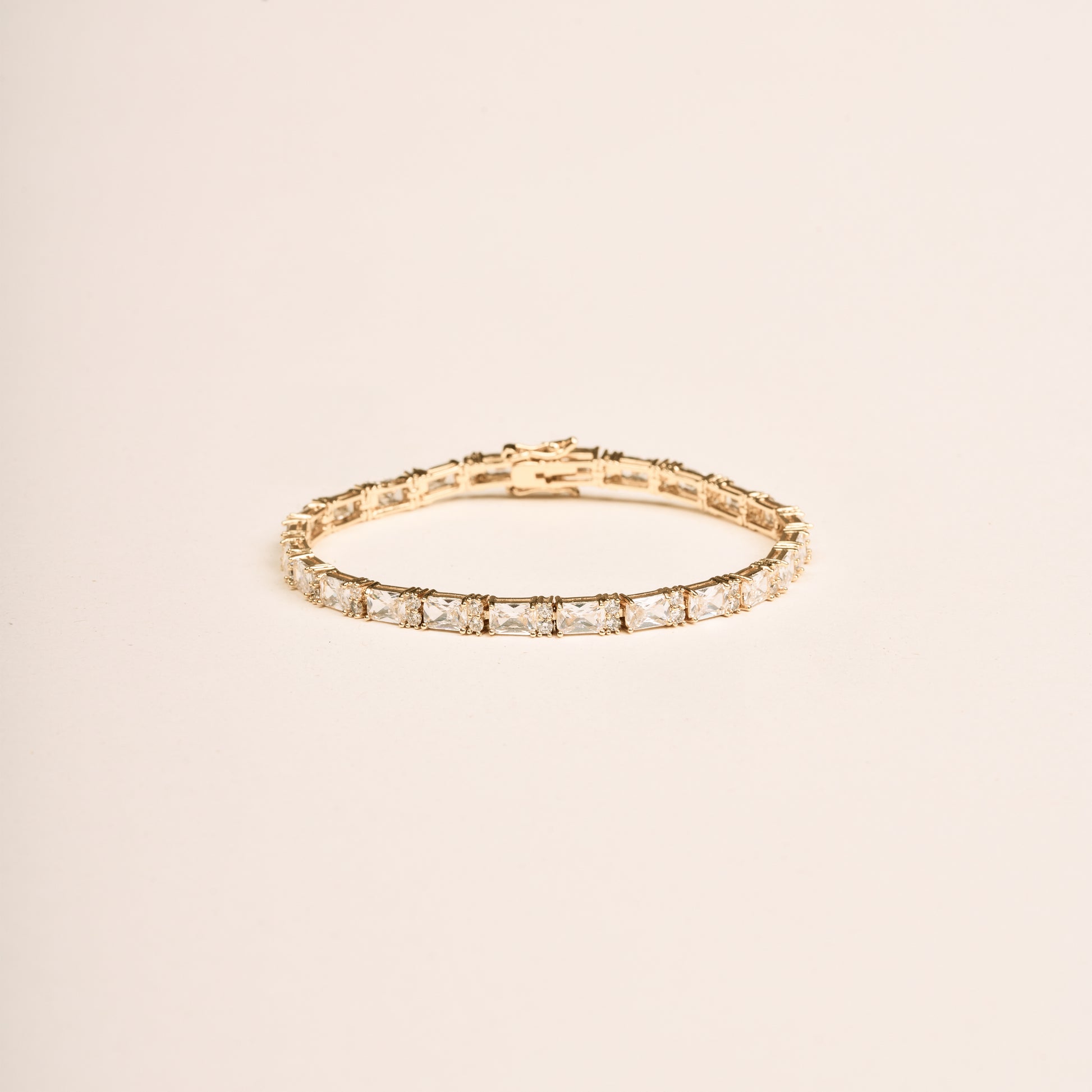 The Camille Bracelet features princess-cut stones set in a polished gold finish, creating a refined and timeless look. A versatile piece designed to add understated luxury to any outfit.
