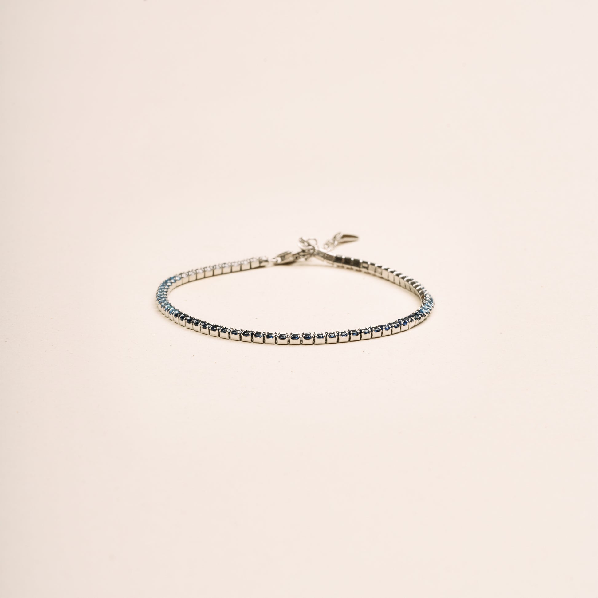 The Ciel Bracelet is a delicate adjustable chain adorned with soft sky-blue stones. Its minimalist design and subtle sparkle make it the perfect everyday piece, whether worn solo or stacked for a layered look.