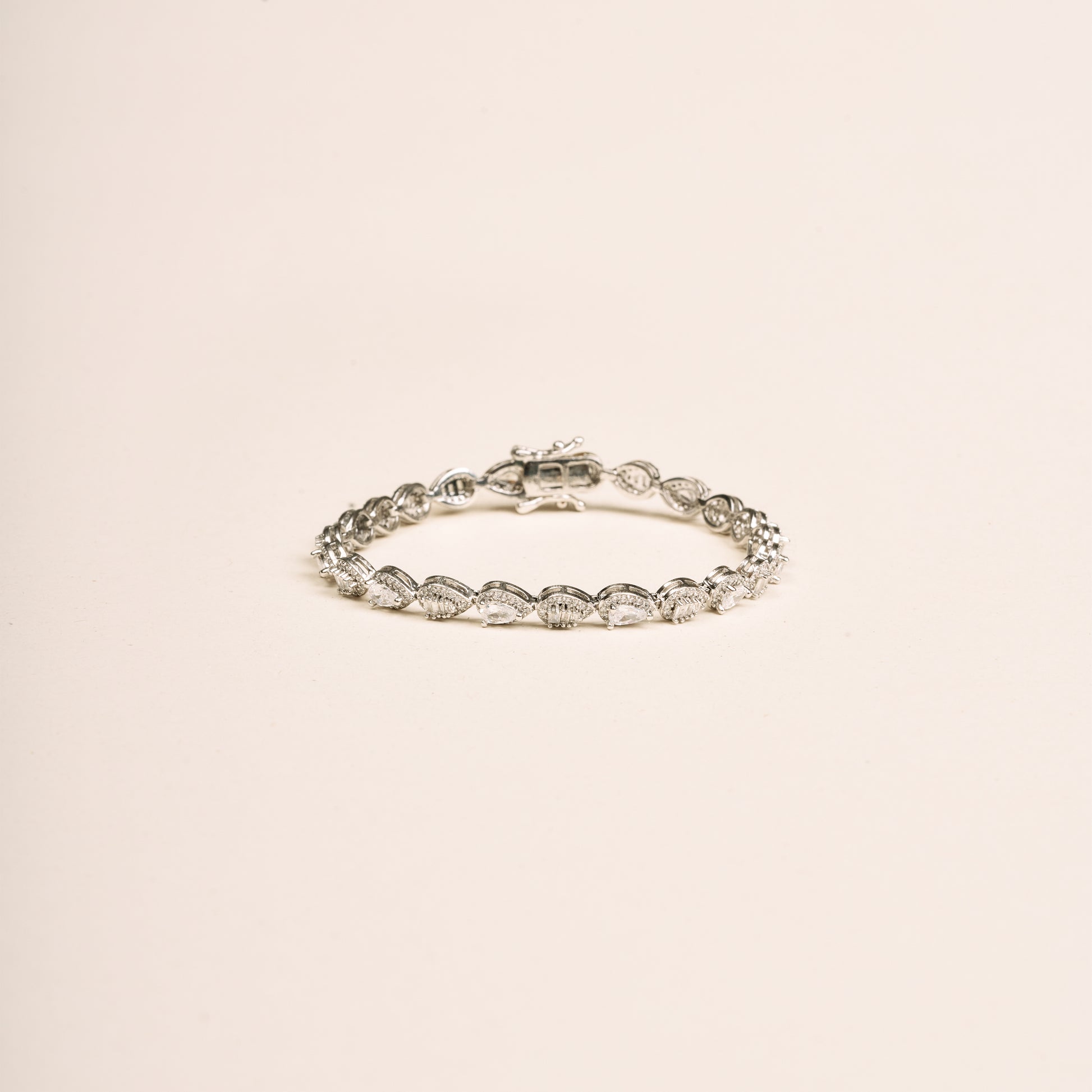 The Marquise Bracelet features elegant marquise-cut stones set in a refined silver finish, creating a graceful and timeless silhouette. Perfect for special occasions or adding sophistication to everyday looks.