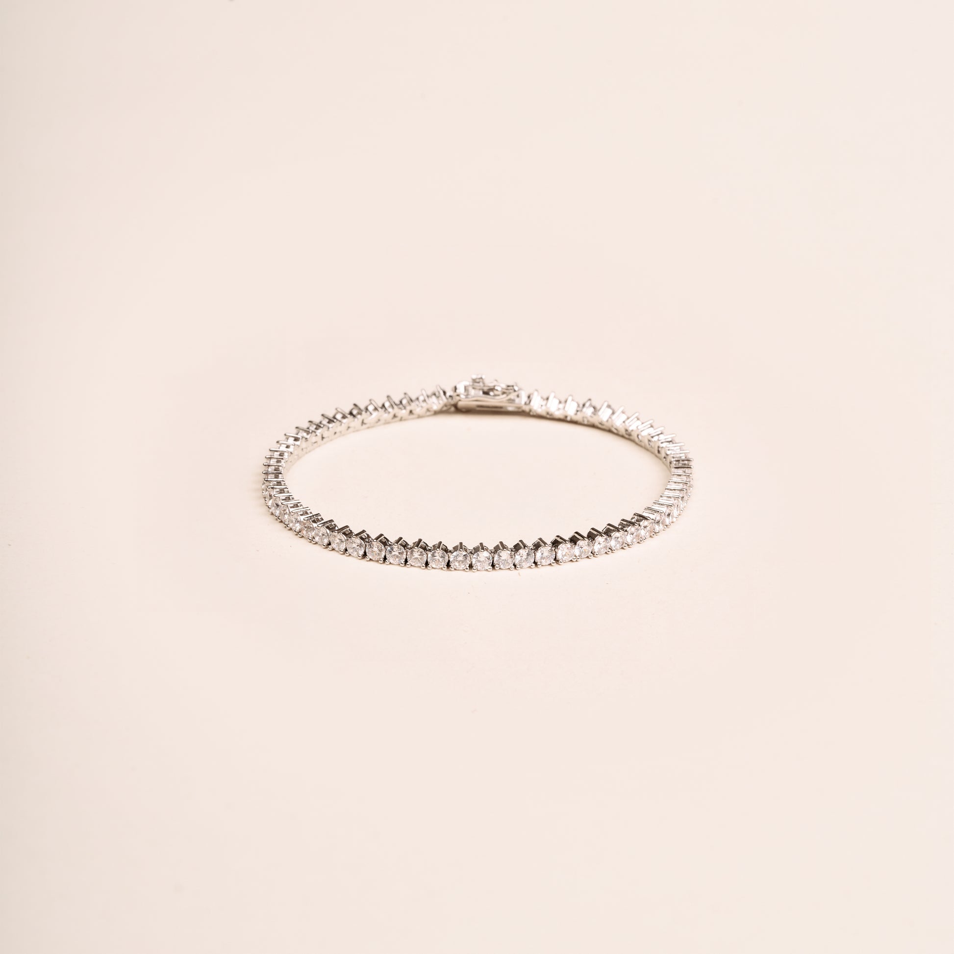 The Maëlle Bracelet features a delicate row of pear-cut stones in a sleek silver finish. Its timeless design and graceful sparkle make it a versatile piece, perfect for both everyday elegance and special occasions.